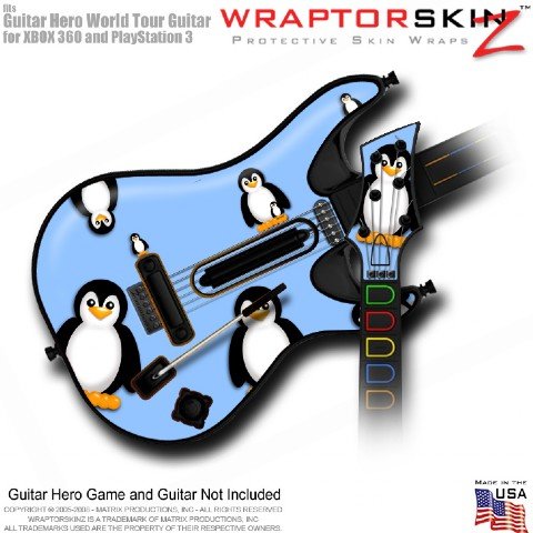 "Penguins on Blue Skin fits Band Hero, Guitar Hero 5 & World Tour Guitars for XBOX 360 & PS3 (GUITAR NOT INCLUDED) by WraptorSkinz" Overview